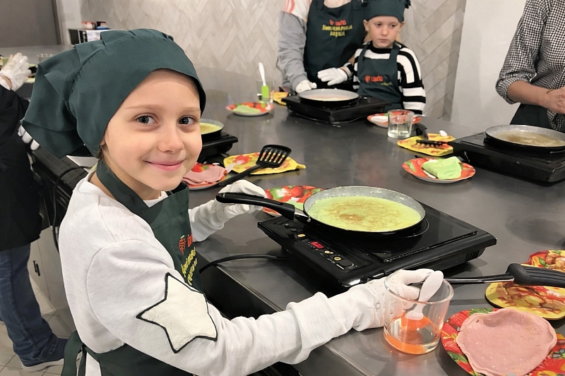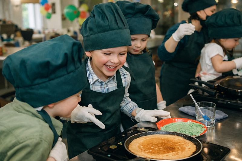 Кулинарный: Под руководством инструктора дети учатся печь цветные блины и готовить молочный коктейль с последующей дегустацией.