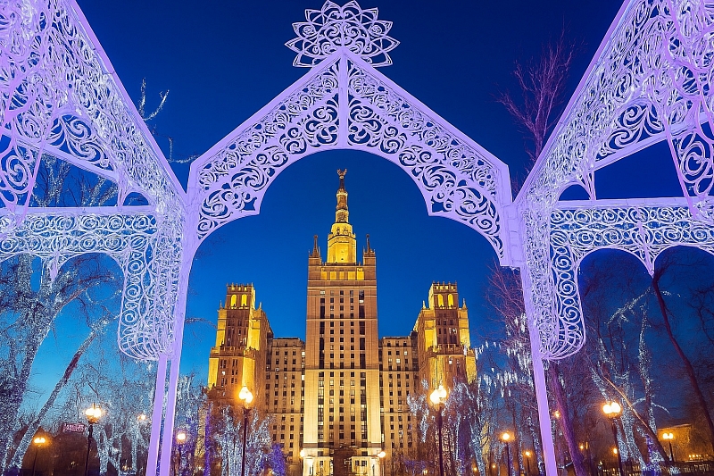 На Воробьёвых горах открывается один из лучших панорамных видов Москвы. Виден МГУ имени М. В. Ломоносова, а рядом — Лужники, где традиционно собираются москвичи, чтобы зажечь бенгальские огни и встретить Новый год с огнями столицы на ладонях.