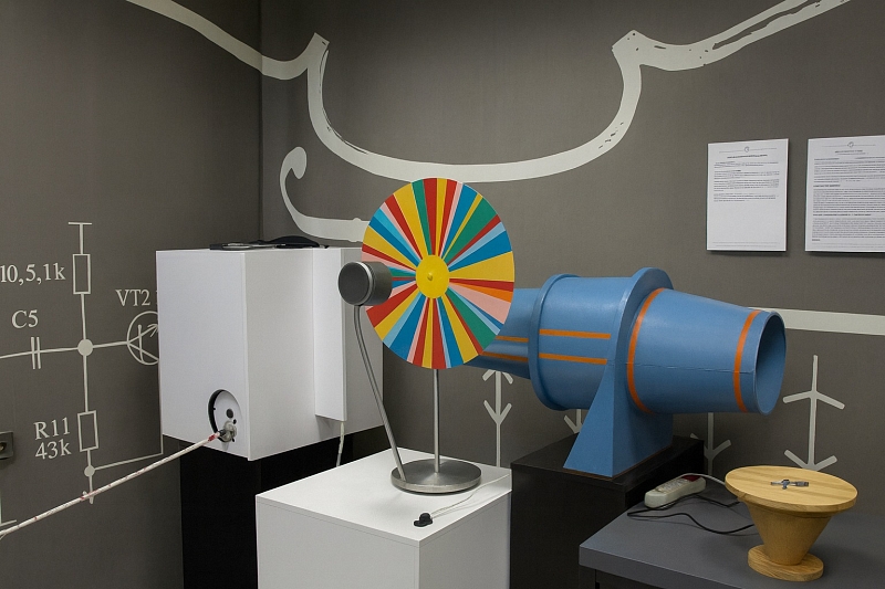 Ключевые экспонаты: плазменный шар, камера-обскура, «капля в воздухе», тауматроп, цветной диск Ньютона («ромашка»), маятник с незакреплённой точкой подвеса, фигуры Лиссажу, цепь Герона, линза Френеля. Экскурсовод показывает принцип работы, затем участники повторяют эксперимент и фиксируют результат.