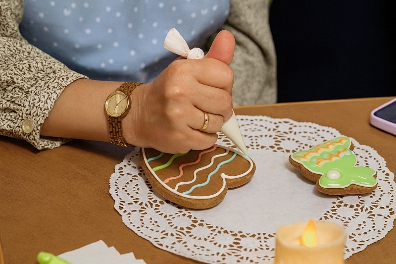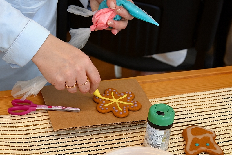 Основная часть занятия проходит за индивидуальными рабочими местами. Участникам выдаются пряники различных форм — от классических фигурок до праздничных символов. С помощью цветной глазури и кондитерских инструментов каждый сможет воплотить в жизнь собственные идеи и попробовать разные техники декорирования.