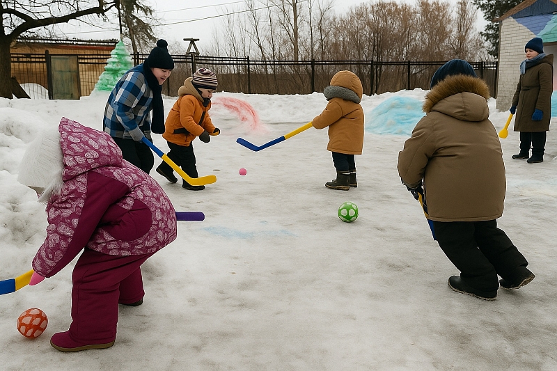 Особое внимание уделено традиционным русским играм: катанию на «ледяных санях», перетягиванию каната, метанию снежков и шуточным состязаниям с мячами и палками. Для самых маленьких предусмотрены упрощённые задания и интерактивные мини-игры, где каждый участник чувствует себя частью общего веселья.